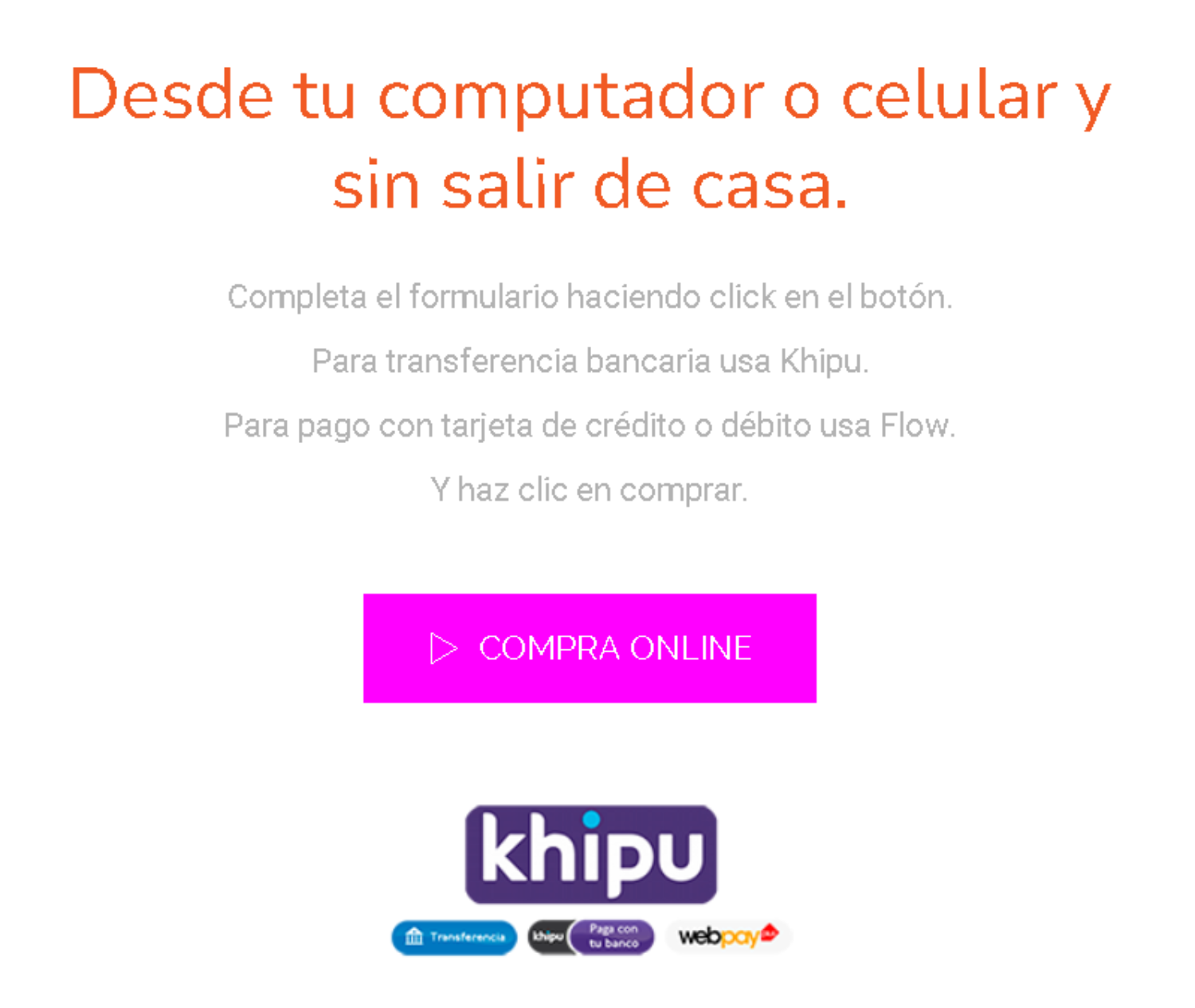 Para transferencia bancaria usa Khipu.